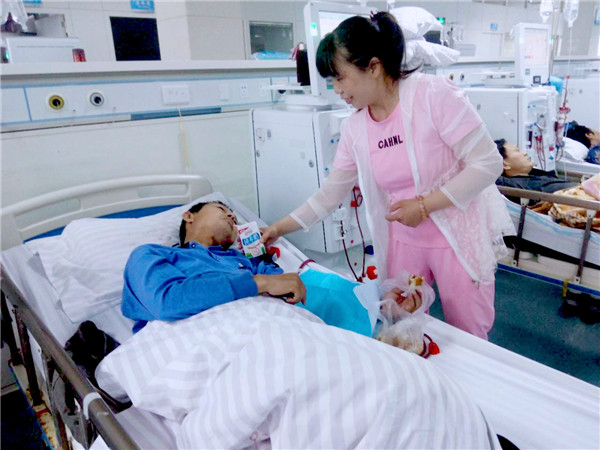 26年前,年僅21歲的李永華風華正茂,經(jīng)人介紹認識了在楊莊礦保運一區(qū)上班的李本前,兩人話語投機,共同組建起一個溫暖的礦工家庭?;楹?,兩人互敬互愛,從未吵過架,紅過臉。兩年后,兒子李悅的誕生更給這個平凡的家庭增添了更多的快樂。誰曾想到,病魔不期而至,奪走了生活中一切美好的東西。2007年5月,李本前被南京市人民醫(yī)院確診為尿毒癥??粗种械幕瀱?,李永華簡直不敢相信自己的眼睛,這今后的日子可怎么過??!望著躺在病床上飽受折磨、日漸消瘦的丈夫,李永華心如刀割。擦干淚水,她握著丈夫的手許下了一輩子的承諾:“別怕,再大的事我和你一起扛!”
