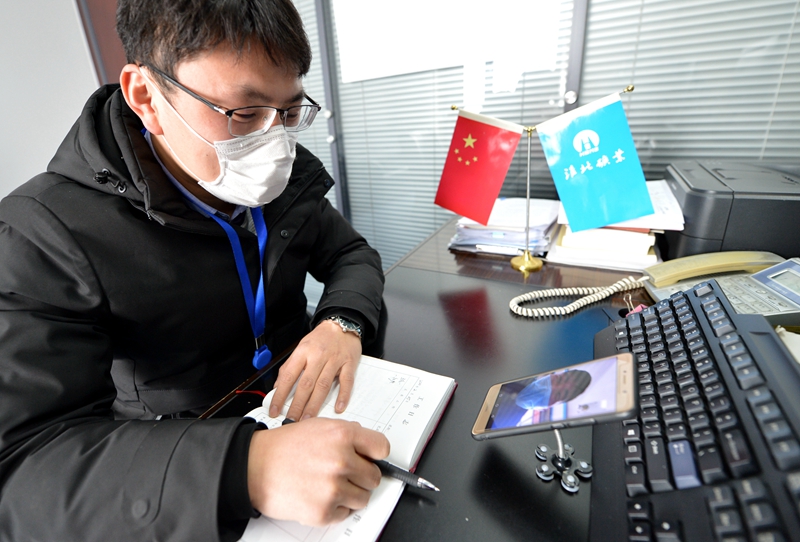 2月26日,淮北礦業(yè)集團組織(人事)部負責(zé)高校畢業(yè)生招聘的人員通過視頻方式對應(yīng)聘者進行面試。陳磊 攝