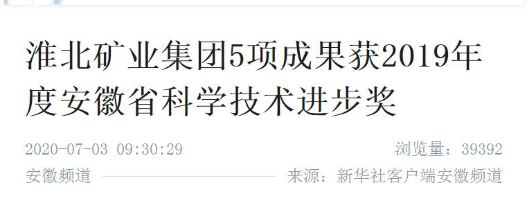 日前,從安徽省科學技術獎勵大會上傳來喜訊,淮北礦業(yè)集團及所屬子公司5項科技成果獲獎。