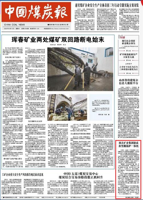 本報訊 連續(xù)4個月單進超110米,安徽淮北礦業(yè)集團新型掘錨護一體機在朱仙莊礦88運輸大巷試用取得成功。
