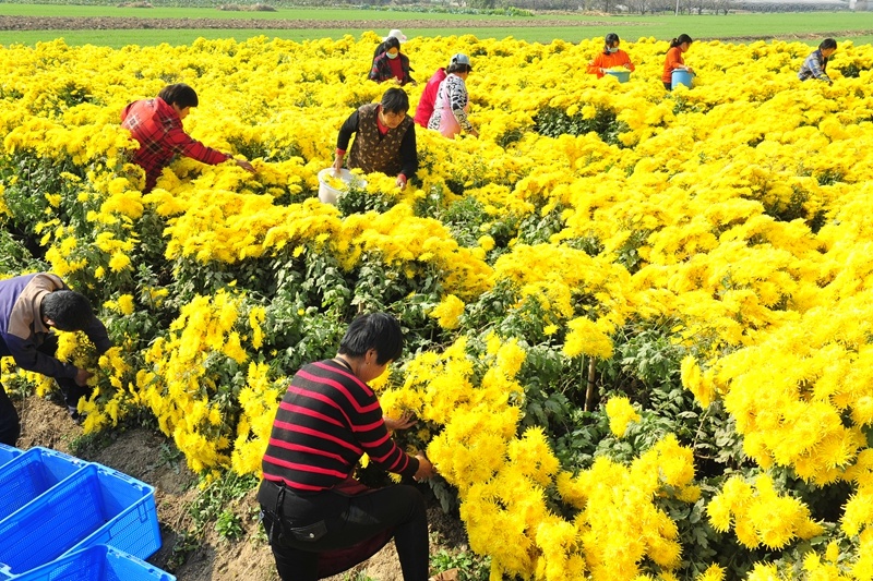 淮北礦業(yè)集團(tuán)扶持的皇菊茶種植業(yè)喜獲豐收(喬時(shí)慶 攝)