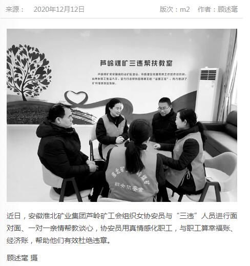 《中國(guó)煤炭報(bào)》:淮北礦業(yè)集團(tuán)蘆嶺礦工會(huì)“三違”幫教助安全
