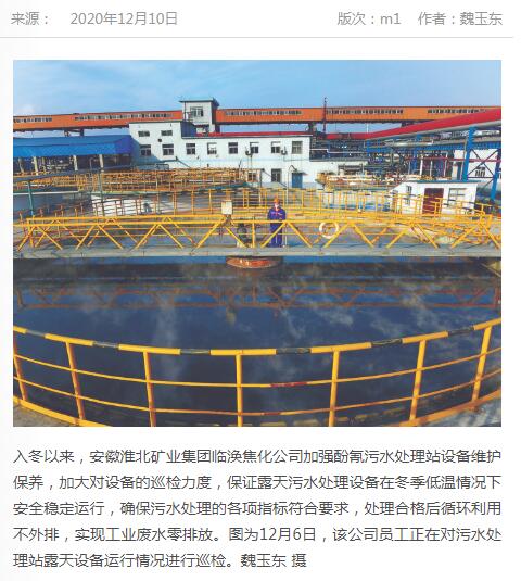 《中國(guó)煤炭報(bào)》:淮北礦業(yè)集團(tuán)臨渙焦化公司工業(yè)廢水零排放