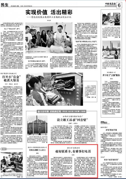 “民情聯(lián)系卡”印有該處黨委書記、工會(huì)主席的手機(jī)號(hào)碼和辦公室電話號(hào)碼。當(dāng)職工群眾遇到急難愁盼的事,遇到不合理不公平的現(xiàn)象,都可以及時(shí)反饋。