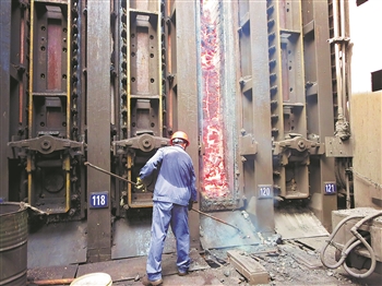 圖為7月12日,一名出爐工冒著高溫進(jìn)行出焦作業(yè)。魏玉東 攝