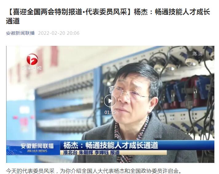 《安徽新聞聯(lián)播》:楊杰 暢通技能人才成長(zhǎng)通道