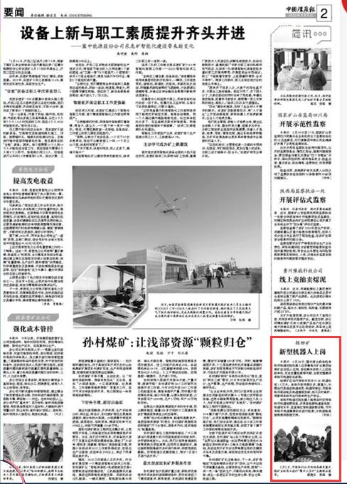 《中國煤炭報(bào)》:淮北礦業(yè)集團(tuán)楊柳礦新型機(jī)器人上崗