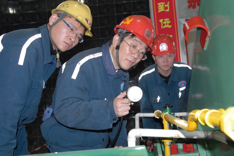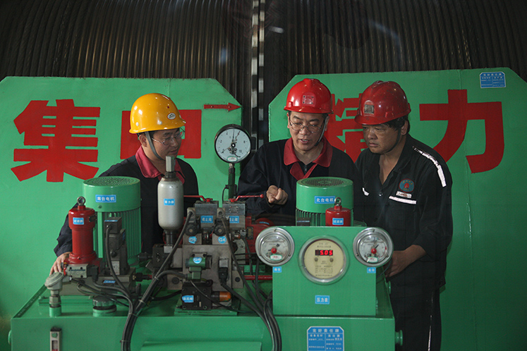 (楊杰和徒弟在生產(chǎn)一線?;幢钡V業(yè)集團供圖)