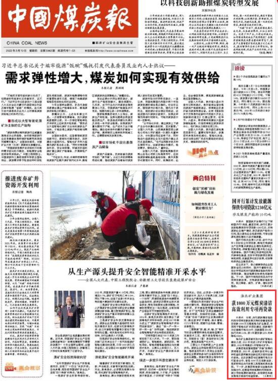 《中國煤炭報》:淮北礦業(yè)集團獲1000萬元煤炭清潔高效利用專項再貸款
