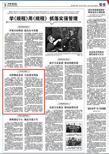 據(jù)介紹,自《應急管理部關于修改〈煤礦安全規(guī)程〉的決定》公布后,淮北礦業(yè)集團就及時為煤礦生產(chǎn)一線管理人員配發(fā)了新版《規(guī)程》。同時,該集團利用企業(yè)報紙、電視、網(wǎng)站、微信等媒體,開展專題宣傳,組織干部職工學習研討,做好與《規(guī)程》修改條款的對標檢查。各煤礦單位紛紛通過“學、查、改”等方式,推動《規(guī)程》修改條款落地生根,切實提高礦井的安全保障能力。