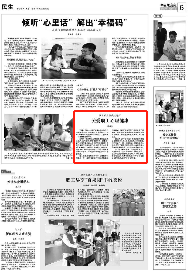 近兩年,部分職工心理亞健康給企業(yè)安全生產(chǎn)、工作效率、和諧穩(wěn)定帶來一定影響。該廠注重對職工的人文關(guān)懷和心理疏導,及時開展職工心理關(guān)愛行動,提升職工心理素質(zhì),緩解職工心理壓力,培育職工自尊自信、理性平和、積極向上的心態(tài),引導職工用健康陽光的心態(tài)去工作和生活,促進企業(yè)和諧、社會穩(wěn)定。