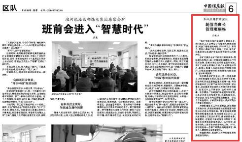 《中國煤炭報》:淮北礦業(yè)集團朱仙莊煤礦安監(jiān)處輪值當班長管理更順暢