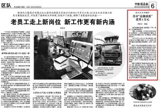 《中國(guó)煤炭報(bào)》:淮北礦業(yè)許疃礦月評(píng)“金牌班組”重獎(jiǎng)1萬(wàn)元