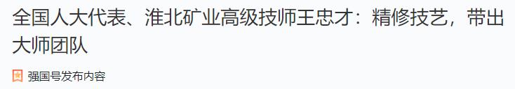 《學(xué)習(xí)強(qiáng)國》:全國人大代表、淮北礦業(yè)高級技師王忠才——精修技藝,帶出大師團(tuán)隊(duì)