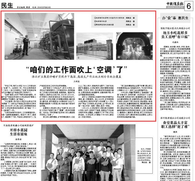 《中國(guó)煤炭報(bào)》:淮北礦業(yè)集團(tuán)許疃礦實(shí)現(xiàn)井下高溫、高濕生產(chǎn)作業(yè)地點(diǎn)制冷系統(tǒng)全覆蓋