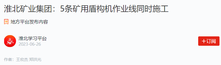 《學(xué)習(xí)強(qiáng)國》:淮北礦業(yè)集團(tuán)5條礦用盾構(gòu)機(jī)作業(yè)線同時(shí)施工
