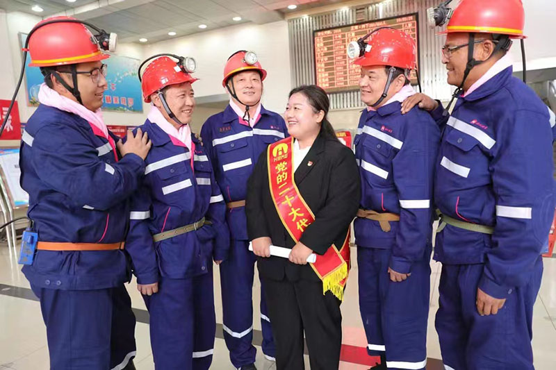 黨的二十大代表、淮北礦業(yè)集團(tuán)桃園礦保運(yùn)區(qū)主提升機(jī)司機(jī)劉婉春深入基層井口、車(chē)間,為工友宣講黨的二十大精神。喬時(shí)慶 攝