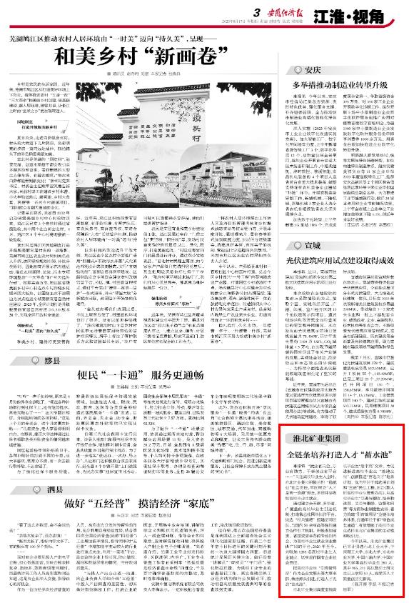 《安徽經(jīng)濟報》:淮北礦業(yè)集團全鏈條培養(yǎng)打造人才“蓄水池”
