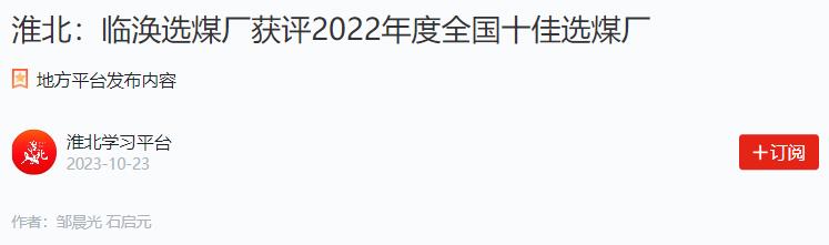 經(jīng)過前期申報、評審和考核驗收,淮北礦業(yè)集團臨渙選煤廠從全國眾多選煤企業(yè)中脫穎而出,被中國煤炭加工利用協(xié)會、中國煤炭工業(yè)協(xié)會選煤分會聯(lián)合認定為2022年度全國十佳選煤廠。在9月27日召開的全國選煤廠十佳先進和五小創(chuàng)新成果表彰會上,受到中國煤炭工業(yè)協(xié)會的表彰。