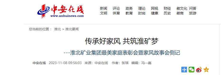 11月3日,以“傳承好家風(fēng) 共筑淮礦夢(mèng)”為主題的淮北礦業(yè)集團(tuán)2023年最美家庭表彰暨最美家風(fēng)故事會(huì)隆重舉行。新當(dāng)選2023年礦區(qū)最美家庭、各類先進(jìn)家庭代表、基層工會(huì)主席、女職工工作負(fù)責(zé)人參加活動(dòng)。