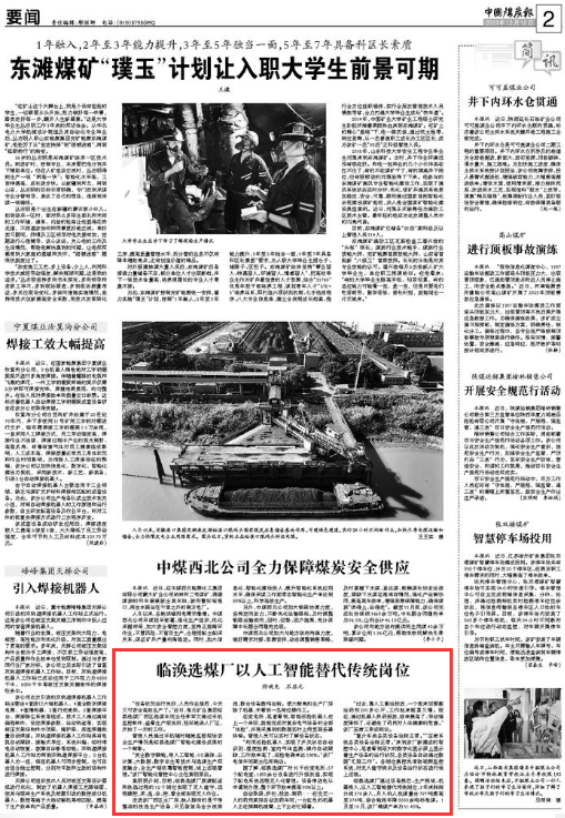 臨渙選煤廠以人工智能替代傳統(tǒng)崗位
