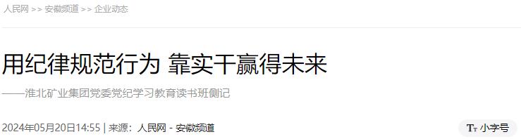 在讀書中收獲感悟,在研討中得到啟迪。5月15日,為期2天的淮北礦業(yè)集團黨委黨紀學習教育讀書班結業(yè)。各級黨員干部集中時間、集中精力,通讀、精讀、研讀習近平總書記關于黨的紀律建設的重要論述及《中國共產黨紀律處分條例》(以下簡稱《條例》)等內容,在學習和掌握紀律上求實效,在維護和遵守紀律上見行動,取得了良好的學習效果,達到了預期目標,凝聚起干事創(chuàng)業(yè)的磅礴力量。