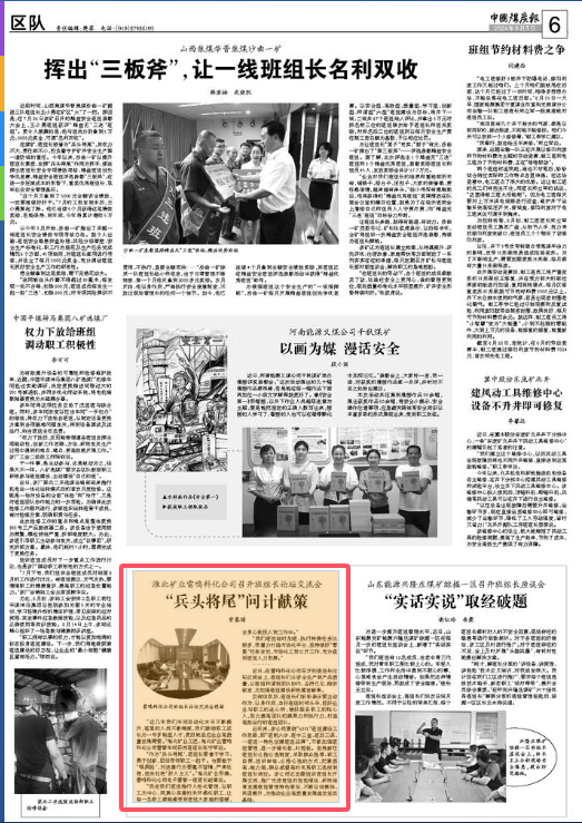 “我在我們班組推行人性化管理,以職工為中心,用真心實(shí)意的關(guān)懷感化職工,讓每一名職工都能感受到班組大家庭的溫暖,全身心地投入到工作中。”