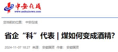 《中安在線》:省企“科”代表 | 煤如何變成酒精?
